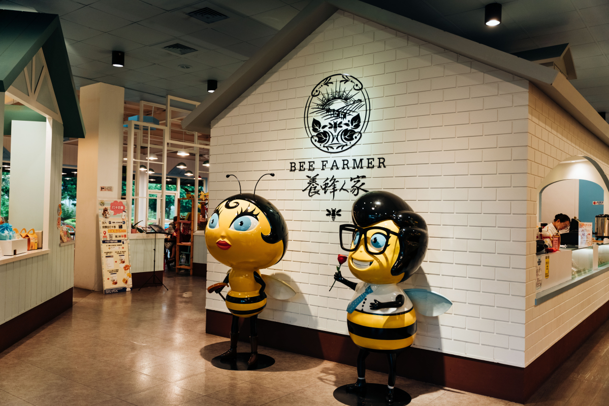 來拜訪蜂采館的參觀者們,有些是為了現做的蜂蜜鬆餅、冰淇淋專程來吃下午茶,有的是來和辛勤的蜂群打招呼進行知性小旅行,還可以看到攜家帶眷的家族遊客,父母在樹蔭下喝著冰蜜茶,孩子則在草地上暢快奔跑,徜徉在蜜蜂最喜愛的純淨自然裡。受到遊客歡迎的蜂采館,其實經營並非一帆風順,2001年建館之初以生態導覽為主,蜂蜜產品為輔,但因為地點等因素,使得剛開始參觀遊客寥寥可數。黃東明館長決定改變型態,重新打造適合親子休憩的環境,並結合咖啡下午茶複合式經營,成功為產業創造新價值。