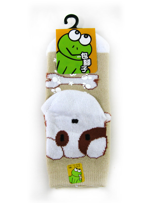 止滑童襪-狗-卡其