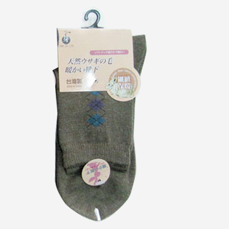 菱格兔毛1/2襪-咖