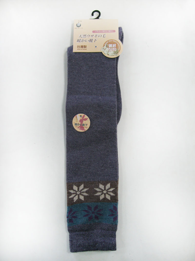兔毛花膝下襪-紫