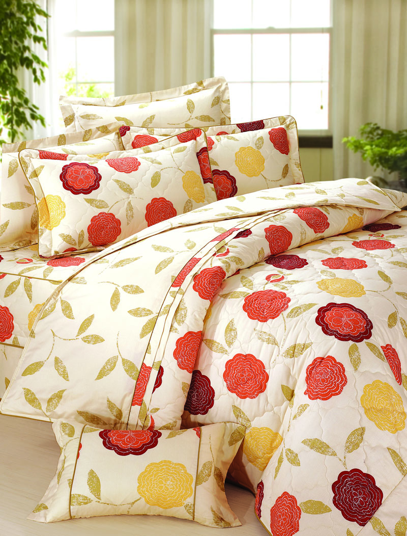 加大床單-橘紅黃大花