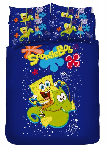 涼被(4x5尺) 海綿寶寶-騎海馬篇 素色 藍
