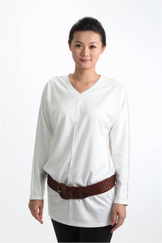 V領剪接片反褶長版衫-I8328-A