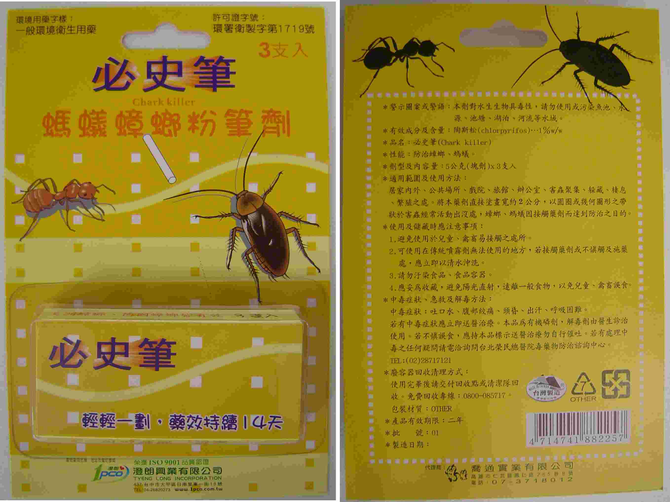 - 產品型號:環衛藥防蟲字第108041801號(白)