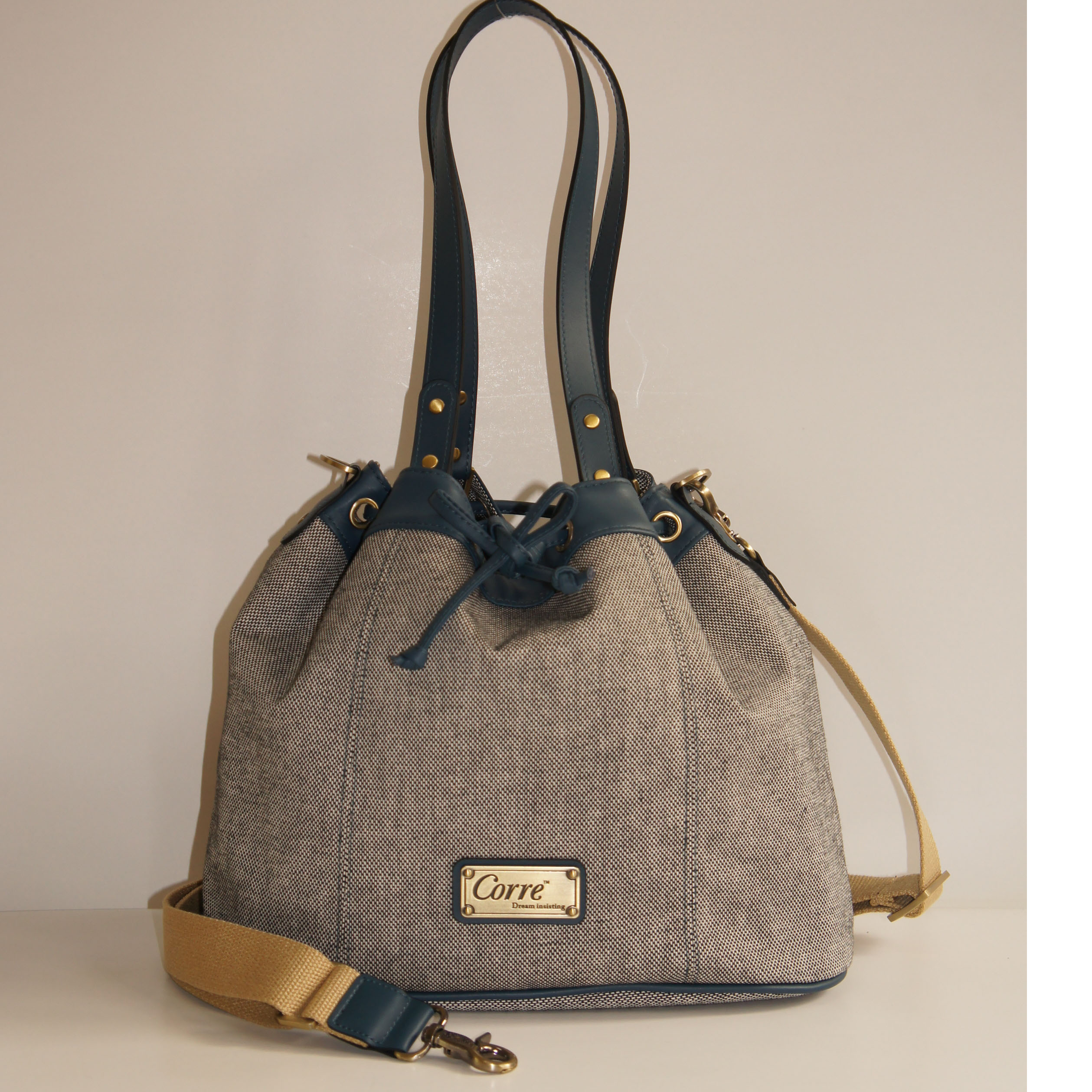 亞麻側背水桶包